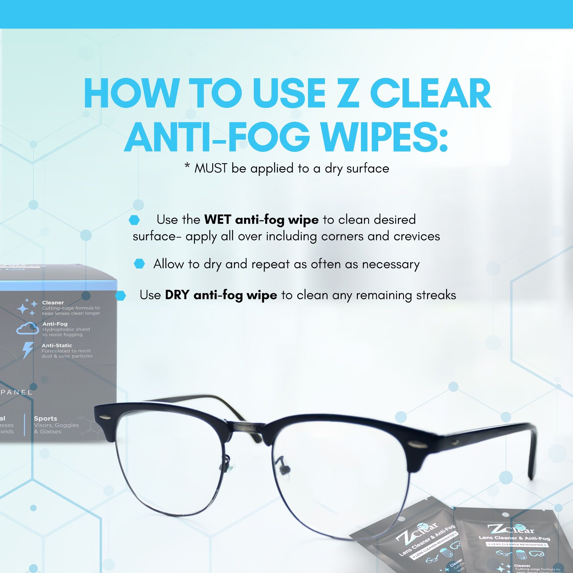 Z Clear Anti Fog Lens Cleaner Wipes Wet & Dry Z Clear Anti Fog Lens Cleaner Wipes Wet & Dry Z Clear Anti Fog Lens Cleaner Wipes Wet & Dry